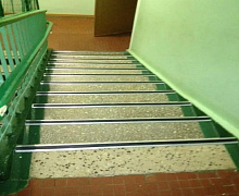 Способ монтажа: алюминиевый порожек без вставки крепится в проем между двумя напольными покрытиями или на ступени при помощи саморезов (идут в комплекте). Затем прорезиненную ПВХ вставку нужно нагреть строительным или обычным феном, либо подержать в горячей воде, чтобы материал стал мягче и легче вошел в паз профиля.