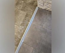 Способ монтажа: алюминиевый порожек без вставки крепится в проем между двумя напольными покрытиями или на ступени при помощи саморезов (идут в комплекте). Затем прорезиненную ПВХ вставку нужно нагреть строительным или обычным феном, либо подержать в горячей воде, чтобы материал стал мягче и легче вошел в паз профиля.